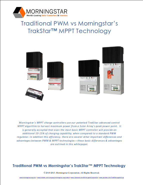 Read MoreDownload the White Paper: Traditional PWM vs Morningstar’s TrakStar™ MPPT Technology